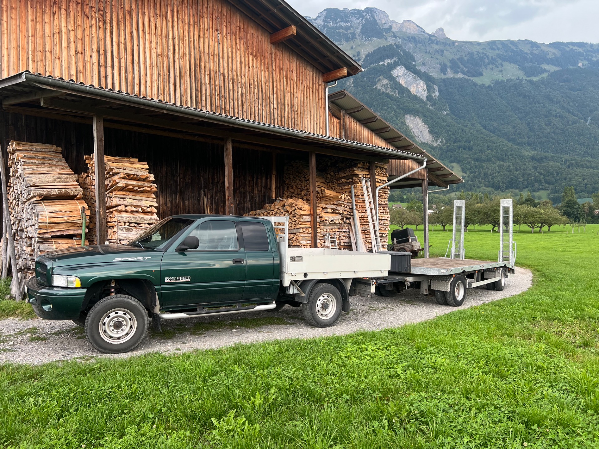 Mit meinem Dodge Ram Cummins 2500 und dem Daltec Vogel 15 Anhänger biete ich kleinere Transporte bis 7 Tonnen in der Region an. Diese Kombination eignet sich ideal für flexible und kurzfristige Transportaufträge.